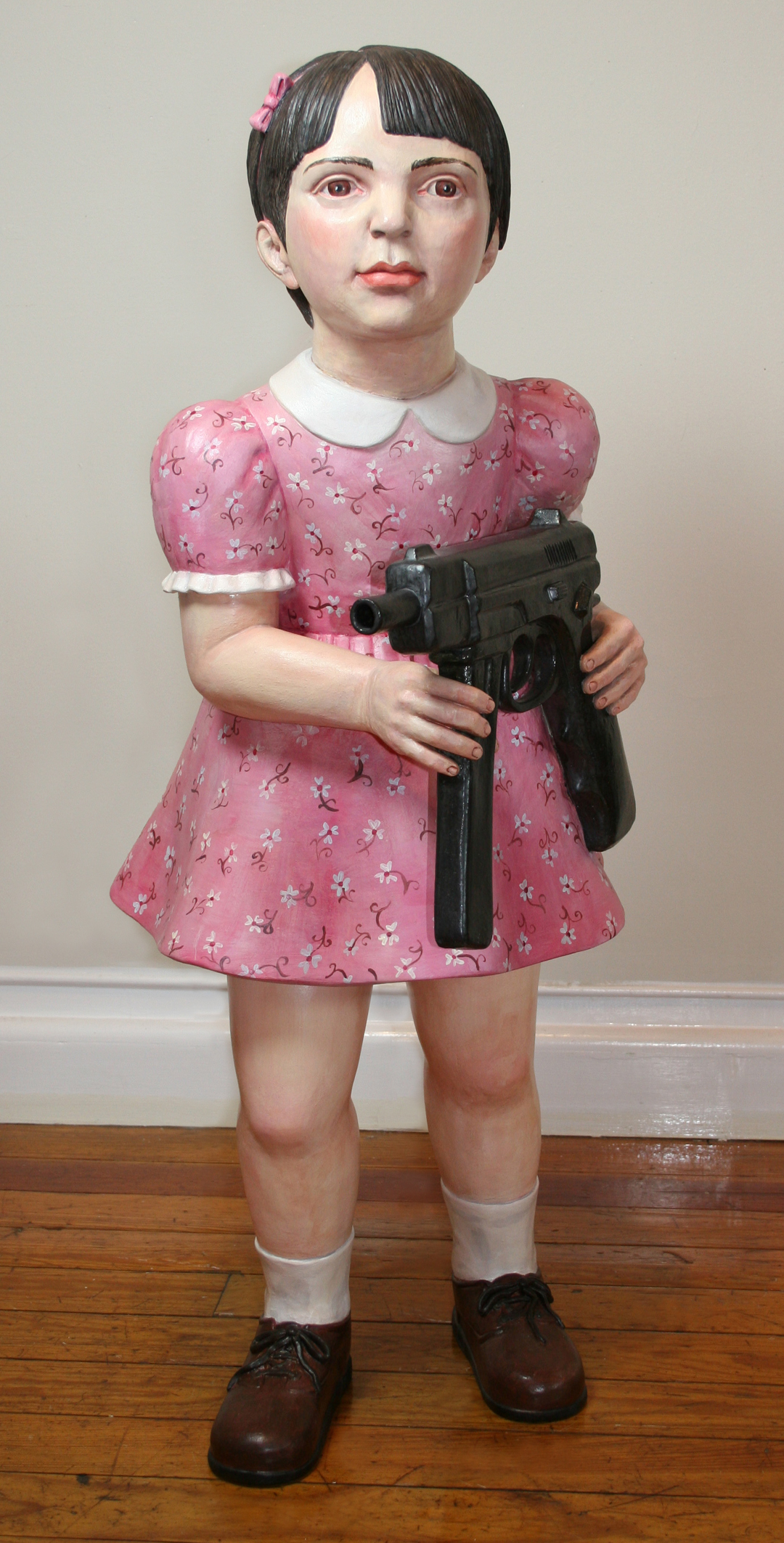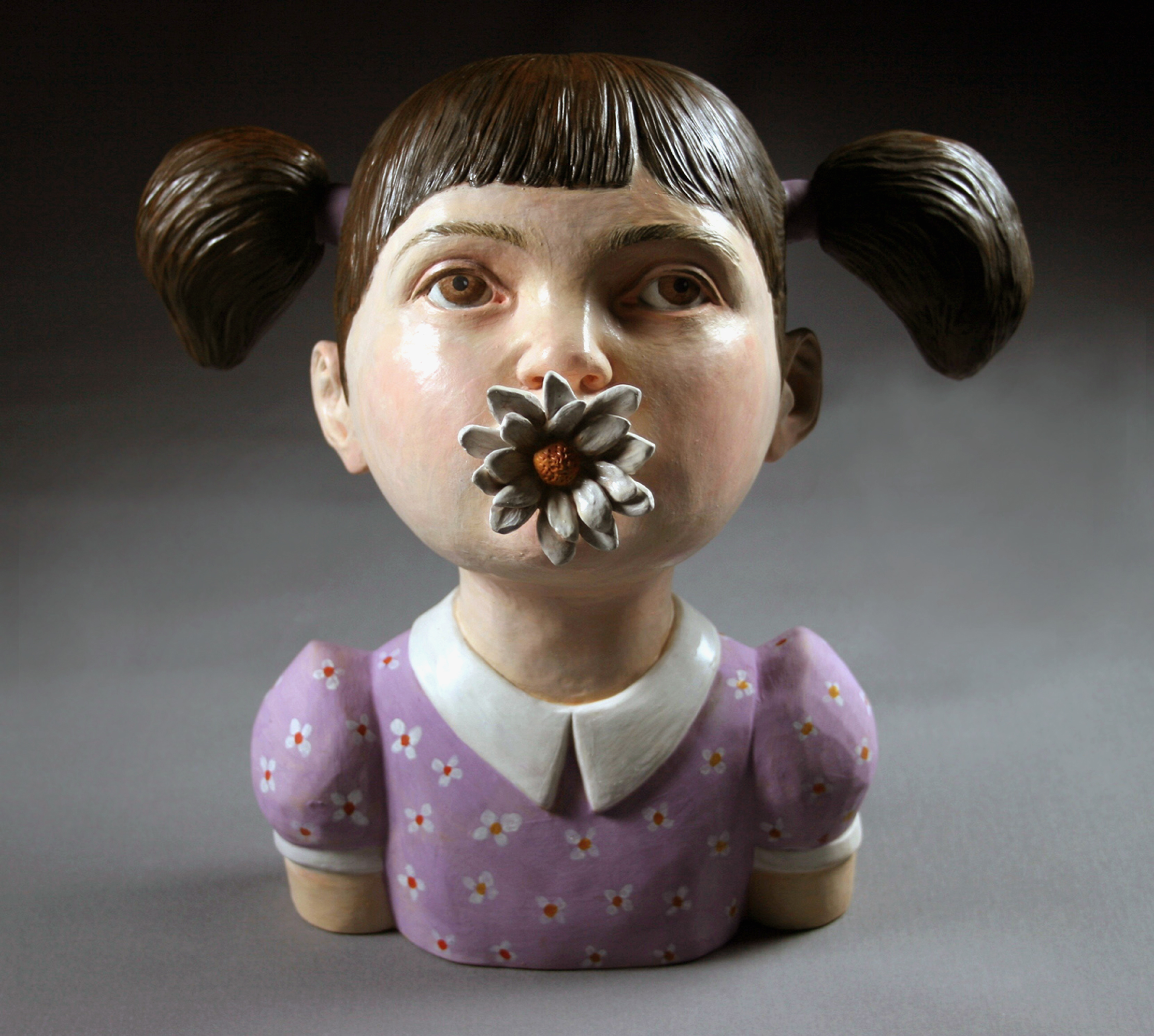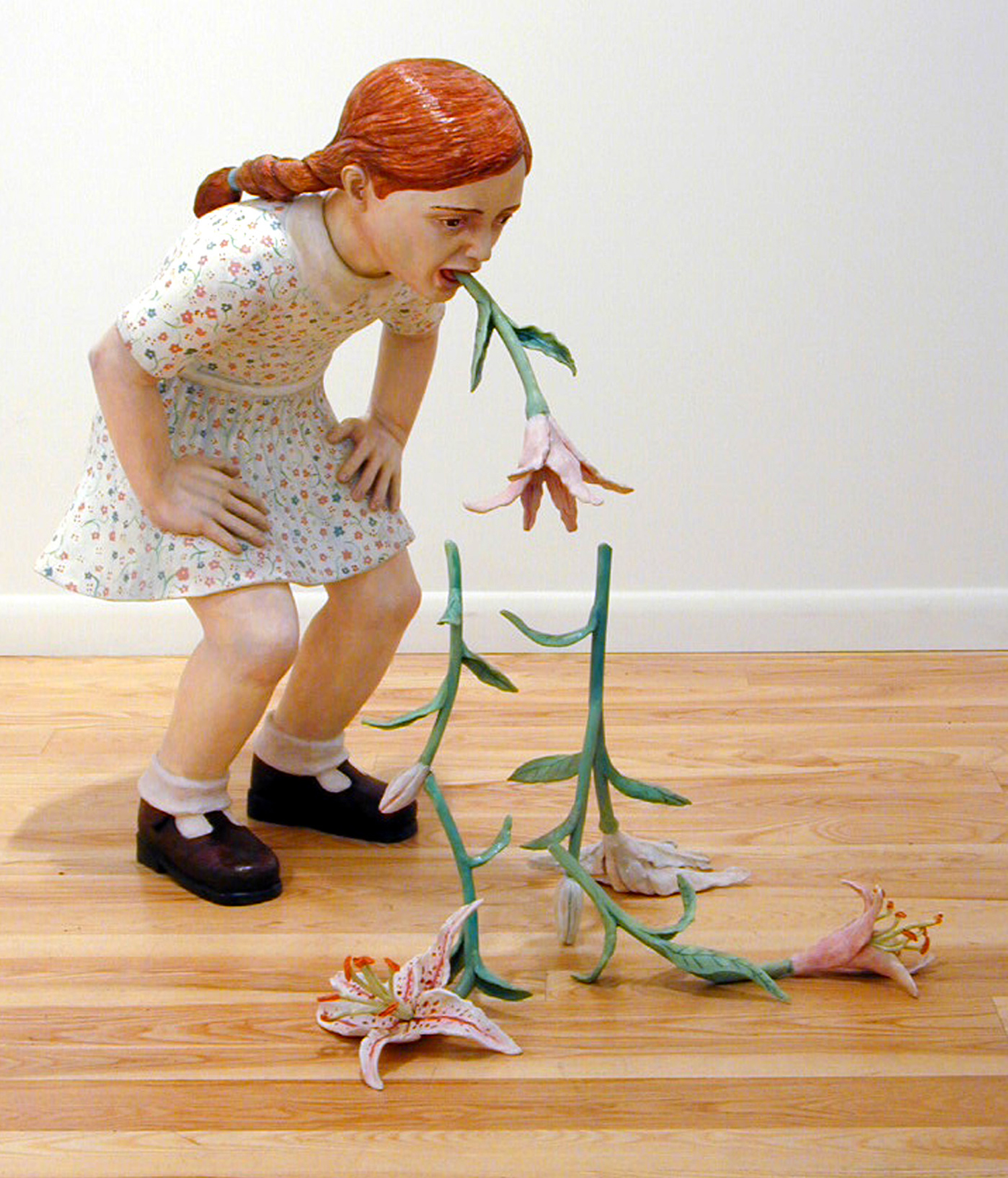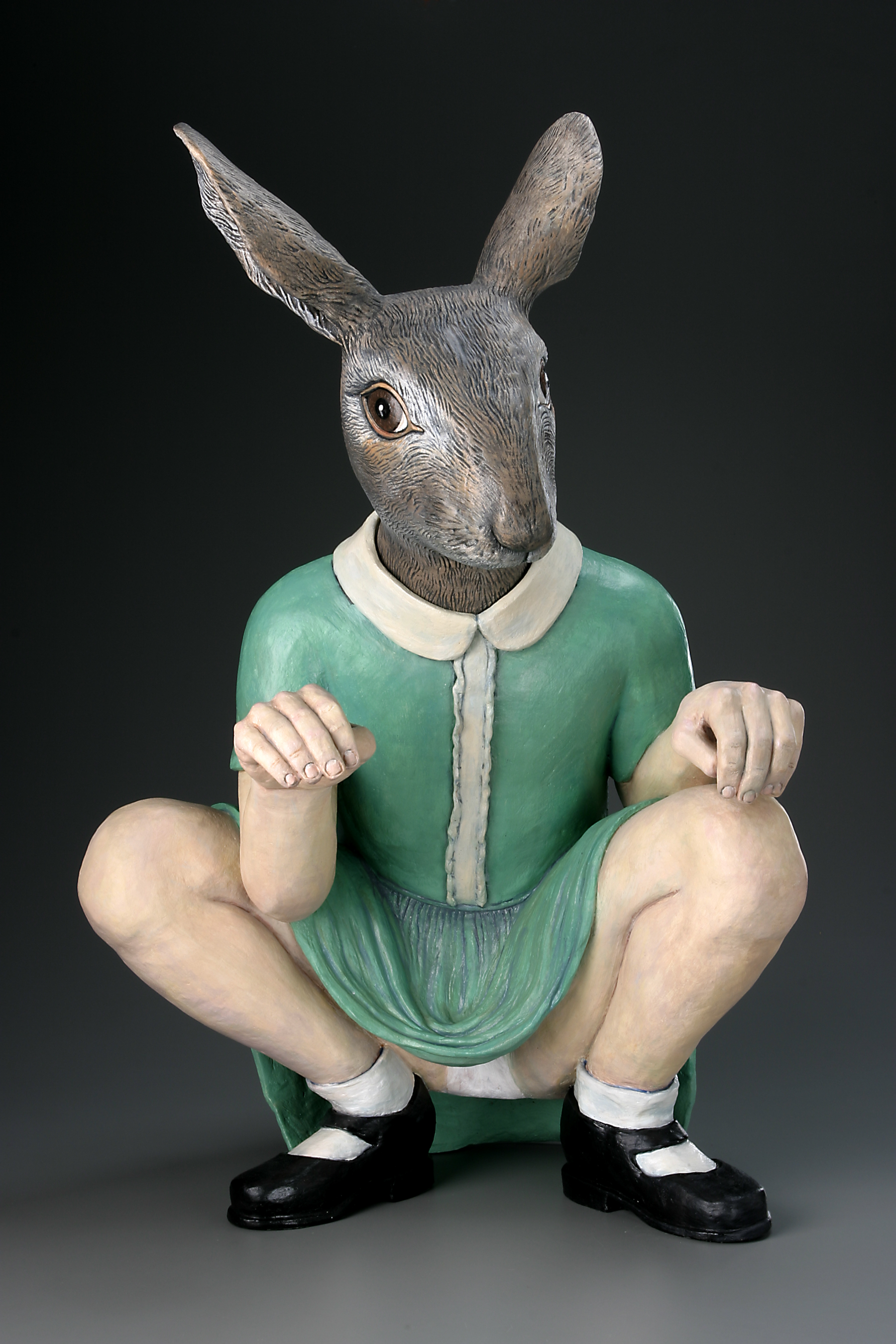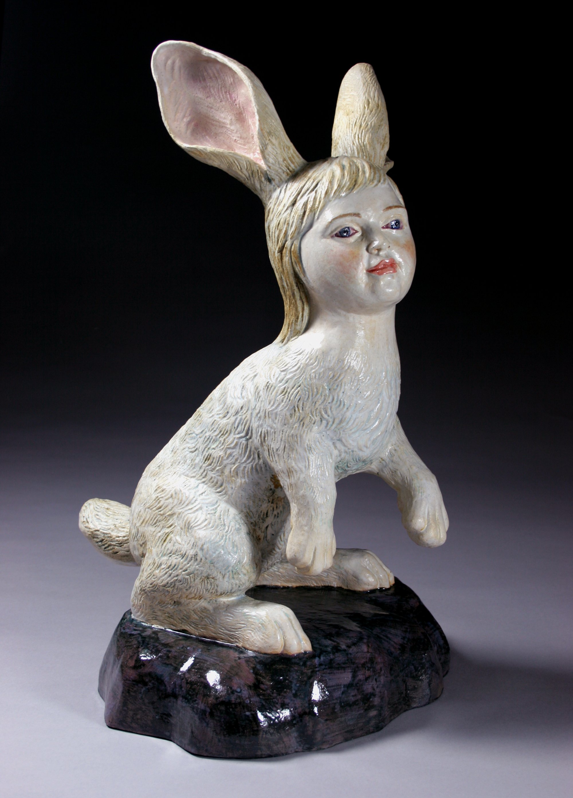 Archives 2000-2007 Self-Portrait with Gun, 2005, earthenware clay, slip, oils, wax, epoxy, 37” x 15.5” x 22″. Flower Girl I, 2004, earthenware clay, oils, brass, 35.5” x 22” x 39”. (Private Collection). Flower Girl III, 2006, stoneware clay, glaze, oils, cold wax, 29″ x 20″ x 18″. (Private Collection). Flower Girl II (Rose), 2005, stoneware, glaze, pipe, epoxy, 28” x 16” x 17.5”. (Private Collection) Flower Girl IV, 2007, earthenware, glaze, oils, acrylic, 49″ x 21″ x 17″. Flower Child III: Children Should Be Seen and Not Heard, 2005, earthenware clay, oils, 11.5” x 11.5” x 7.75”. (Private Collection). Bunny IV, 2006, 16″ x 23.5″ x 8 stoneware clay, glaze, oils. Bunny II, 2006, stoneware, glaze, 15.75” x 9.5” x 15.25”. (Private Collection). Bunny I, 2006, stoneware, glaze, 19.75” x 11.5” x 12.5”. (Private Collection). Bunny III, 2006, stoneware, glaze, oils, 17.5″ x 22.5″ x 10″. Rabbit Girl, 2003, earthenware clay, oils, cold wax, 30.25” x 20” x 17.25”. (Private Collection). Rabbit Girl IV, 2005, earthenware clay, glaze, oils, cold wax, 41” x 18.5” x 13.5”. Rabbit Girl II 2005, earthenware clay, slip, oils, cold wax, 38” x 15.5” x 18.5”. Wolf Girl II, 2003, earthenware, oils cold wax, 44.5” x 23” x 19”. Make Believe Installation 2001-02 clay, mixed media, 17’ x 17’ x 5.5’. Make Believe Installation, 2001, Detail View of Lady, Romulus, Working Woman, Front Loader,Flowers; Clay, mixed media, 65” x 84” x 72″. Share this: Click to share on X (Opens in new window) X Click to share on Facebook (Opens in new window) Facebook Like Loading... Share this: Click to share on X (Opens in new window) X Click to share on Facebook (Opens in new window) Facebook Like Loading...