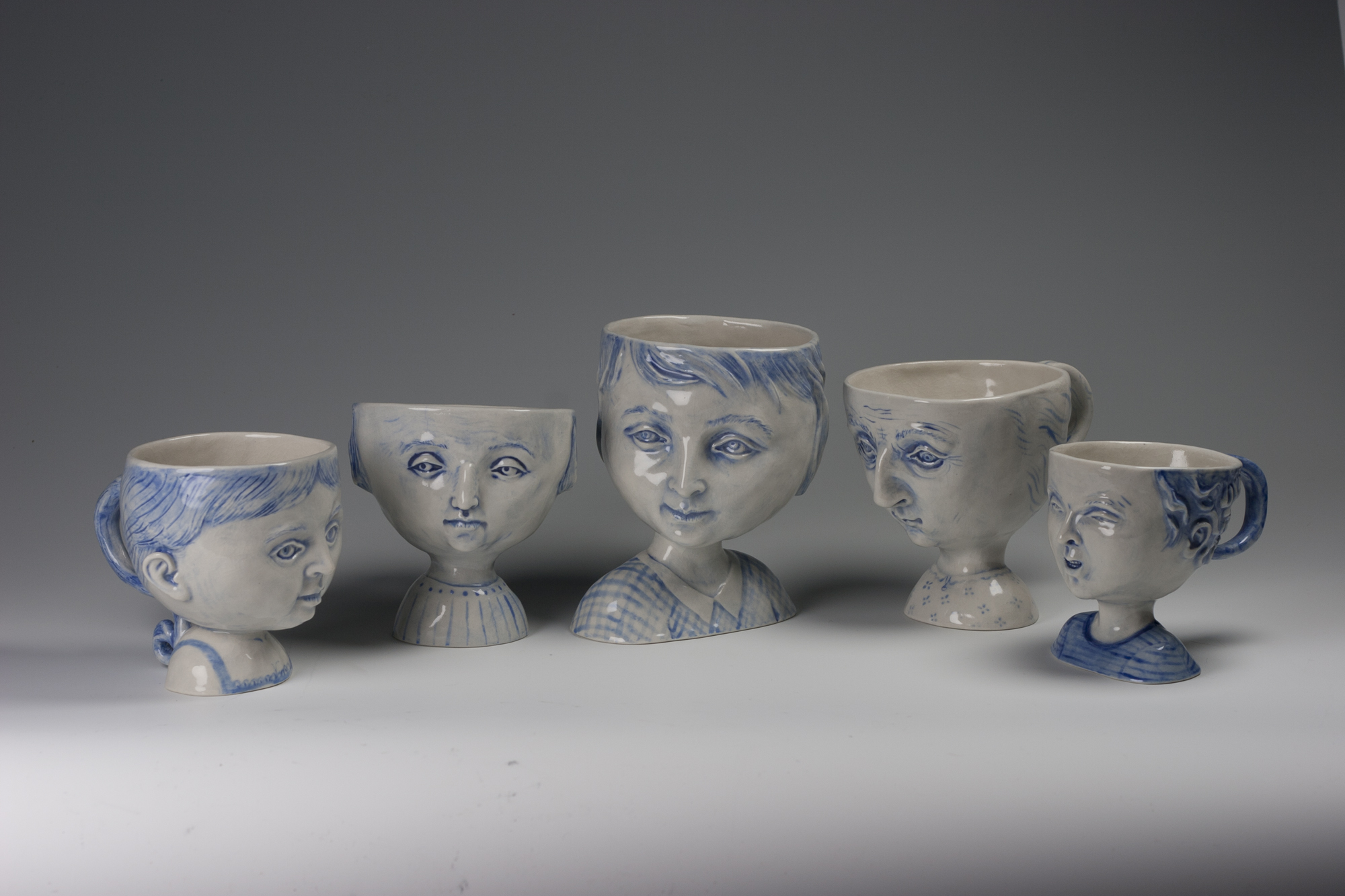 Girl Cups, 2011, stoneware, glaze, 19.5″ -11″ ht. (Private Collection).