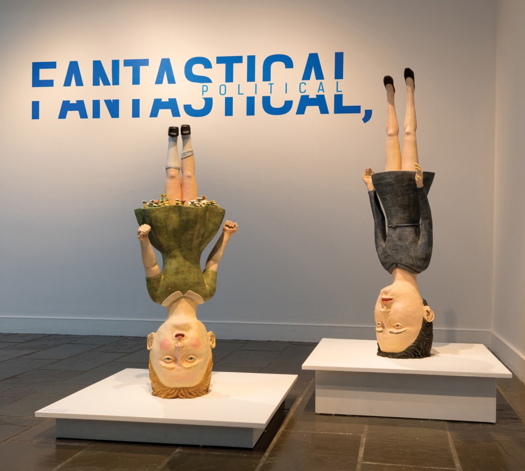 I am drawn to place the familiar alongside the unexpected as a way to look more closely and better understand the original. By taking what is familiar and juxtaposing it with objects and beings from other worlds, or by exaggerating, inverting, reconfiguring, I can see more clearly and reconsider the messages that are part of both the original and altered states. Dualities — the beautiful and the ugly, the fantastical and the realistic, the whole and the fragmented, the tragic and the humorous, the sacred and the worldly — are a vehicle for addressing incongruities within human experience and our culture.