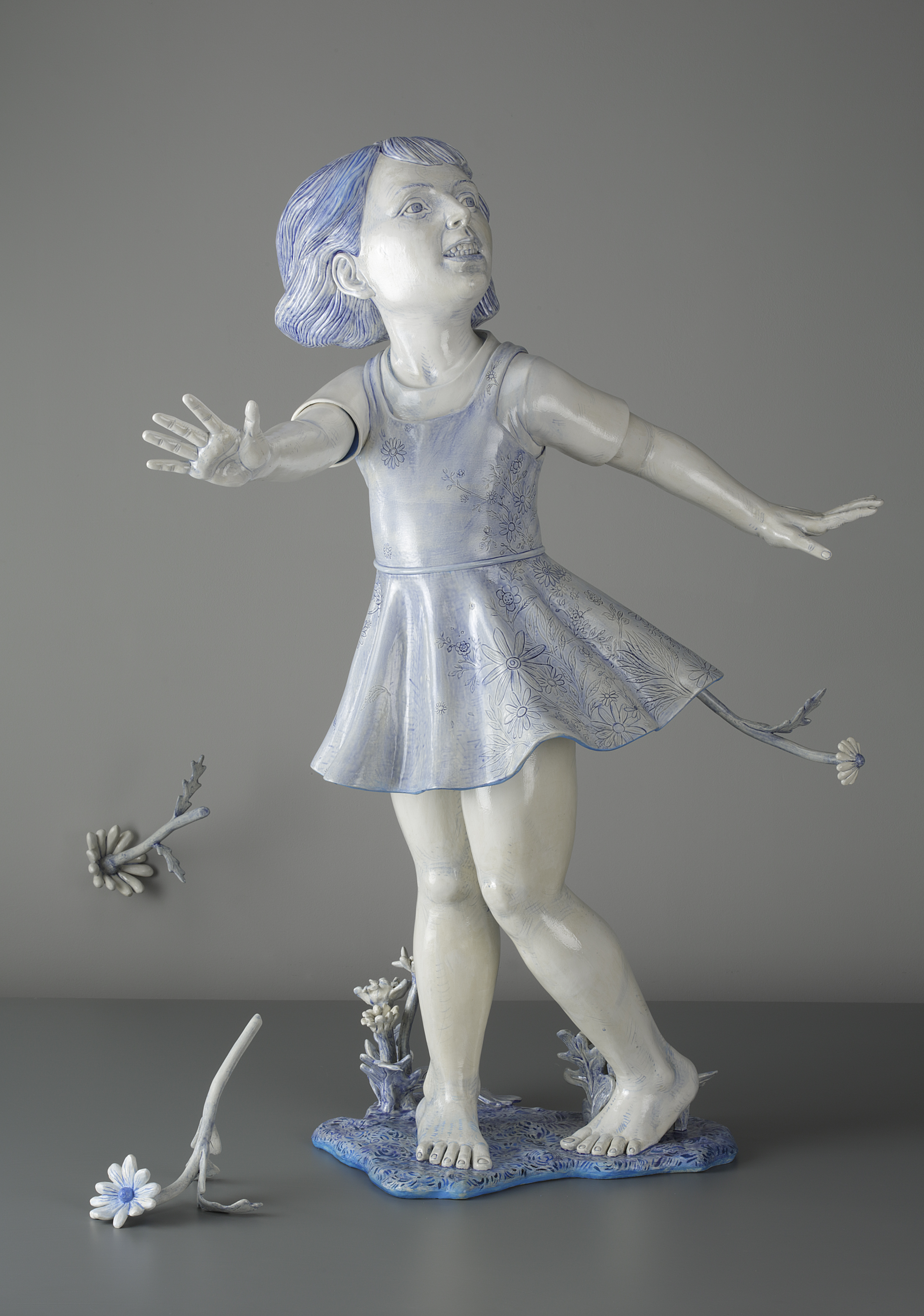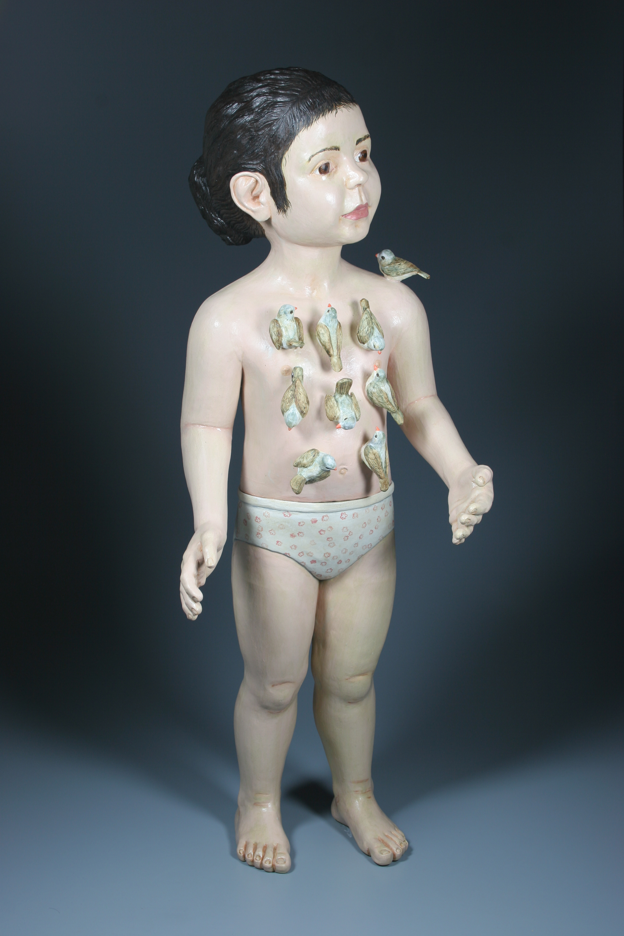 Innocence, 2015, earthenware, oils, 36.75″ x 15.5″ x 14″.